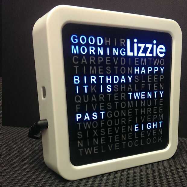Qué es diferente acerca de este reloj es que es lo suficientemente pequeño como para sentarse en una mesa de noche, muestra el nombre de los beneficiarios y ha personalizado los mensajes que aparecen en diferentes momentos, es decir. Feliz cumpleaños, Carpe Diem, Buenos días o lo que elijas.