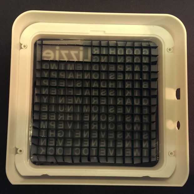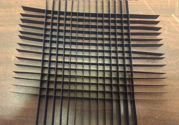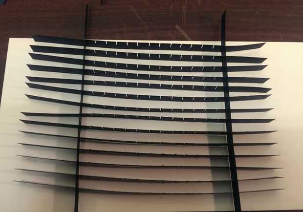 Desmontamos cuidadosamente el paquete y sistemáticamente los deflectores según las imágenes. Ajuste el ancho de los deflectores para caber en la caja y asegurar que haya suficiente espacio libre en todos los lados. De las celdas de texto de nombre quitar los deflectores según el cuadro para asegurar que no son visibles cuando se ilumina detrás el nombre del texto.