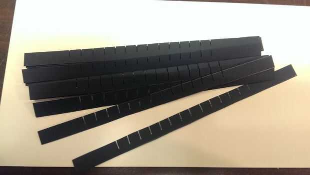 Mida la distancia entre lo LED mostrar el caso vidrio y tablero. Cortar 30 tiras de cartulina negra A4 a la dimensión de esa distancia.