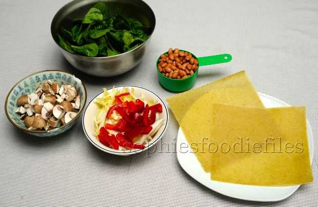 1 witloof, (también llamada endibia belga achicoria) limpia, trocear en tiras más pequeñas, duro final, cortar (130 gr) 3 tazas hojas de espinaca, bien empujado en las tazas (125 gr)