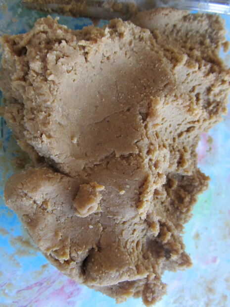 Precalienta el horno a 325 ̊F. Con un tenedor o batidora eléctrica, crema margarina, azúcar morena y vainilla en un tazón grande hasta que esponje. Agregue lentamente la harina hasta que la masa se vuelve demasiado rígida para mezclar con la batidora o tenedor. Mezclar con las manos hasta que la harina se incorpora. Si la masa está demasiado seca para mantener su forma, añadir un poco de agua.