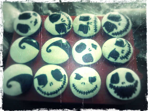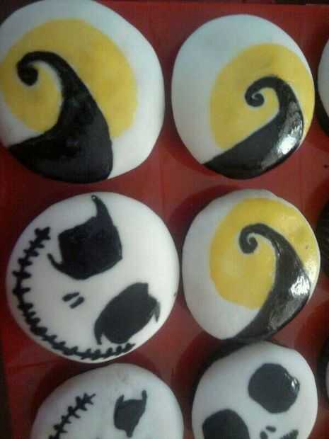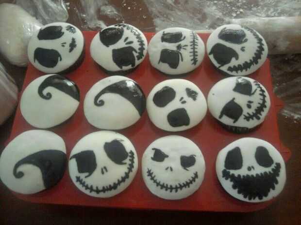 En la mesa flat... poner la maicena (para evitar que se pegue) y empezar a estirar la masa con un rodillo al grosor deseado... uso el cortador redondo y hacer como muchos círculos tienen cupcakes... con un recipiente pequeño con agua mojando un dedo y pasar a las ruedas recién cortan y pegarlos en la Magdalena (repetir todos)... luego pincelar con finos pelos suaves y colorante negro para pintar la cara de esqueleto de gato o el deseado personaje.