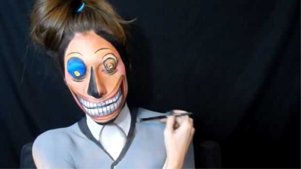 utilicé un Kit de disfraces baratos con cinco palos de maquillaje me costo menos de $2 en un cerca por tienda y mi hija esta vez porque mi esposa me dio un mal rato!!!Primero traté de dibujar una boca grande en un trozo de papel hasta que tengo una i