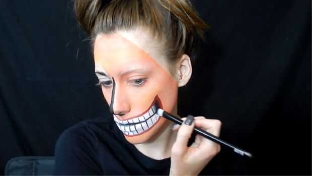 utiliza pintura corporal negra para dibujar los dientes finos y luego he utilizado sombra de ojos negra mate para agregar sombreado.