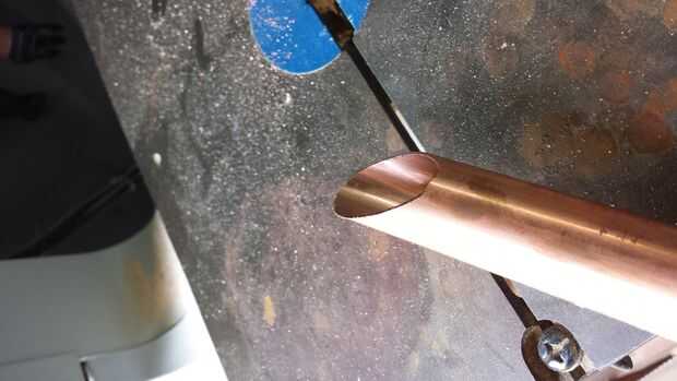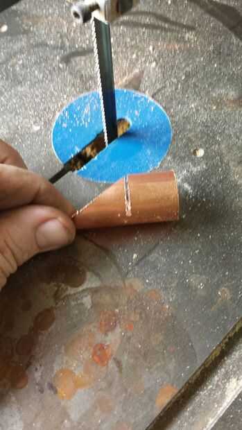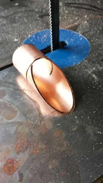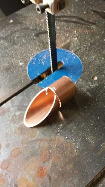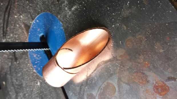 Es más fácil hacer la mayoría de los recortes de formación antes de la partida del resto de la tubería. Dijo, después de que se corte la parte de la oreja y justo debajo de la parte inferior, haga otro corte aproximadamente 3/4" a través del tubo. Asegúrese de hacerlo cerca de la pared exterior, pero no tan cerca como lo hace débil y endeble. El peso del cable será esa pequeña porción sin cortar, así que consciente de lo que está haciendo en este momento.