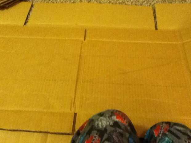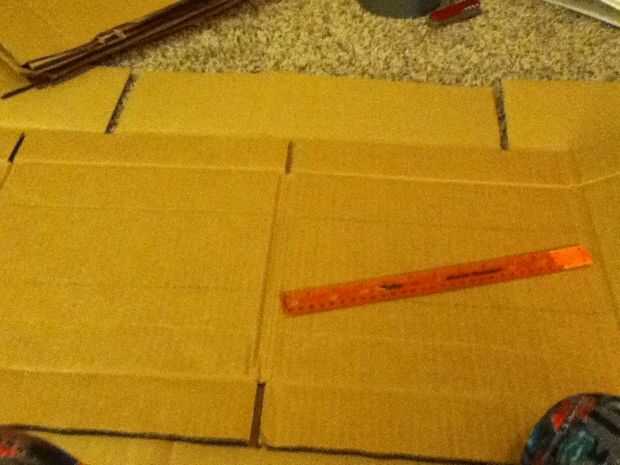 Ahora hacer cinco cajas de 4 "x 12", y hacen una línea diagonal a través de ellos. Cortar estos. Debe tener diez piezas. Es mejor si estos no tienen arrugas o abolladuras, pero es imposible mantener los extremos delgados de tener algunas arrugas.