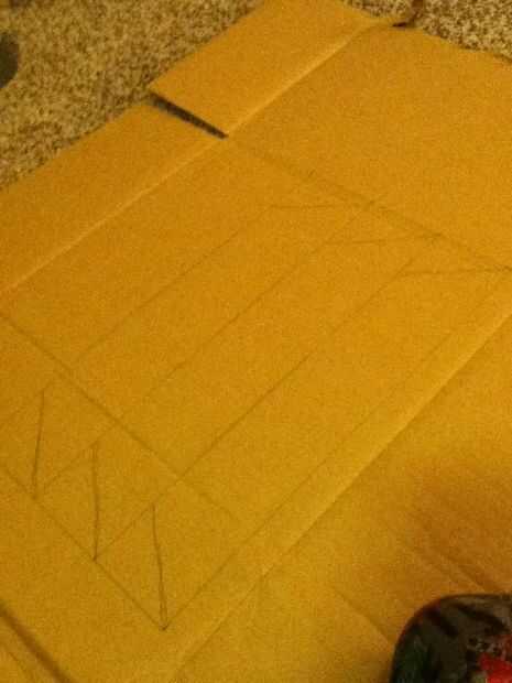 Ahora hacer una caja que es 9 "x 16" y que longitudinalmente en tres partes, cada división 3 "x 16". Ahora corte de las esquinas de un lado para que se parecen a la imagen. Ahora recorto.