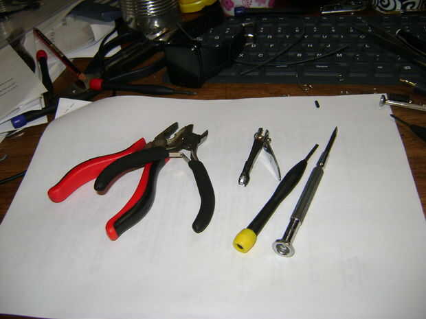 3) dos mini-destornilladores o realmente cualquier cosa que se puede utilizar para enrollar bobinas de alambre.