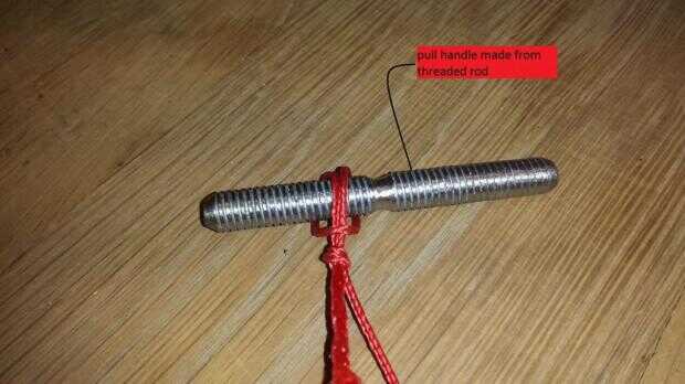 Hice un mango de una pieza de varilla roscada de M8 de que I rectificado de las roscas. También hice un surco en el medio para sostener la cuerda de nylon.