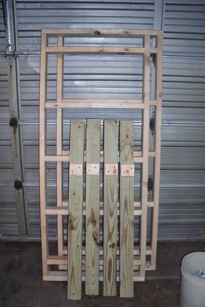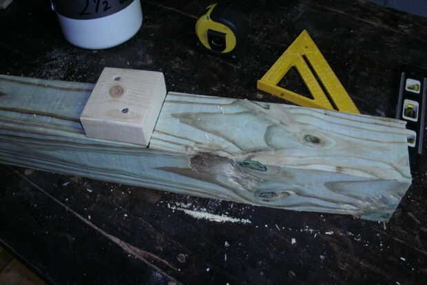 he añadido 3" 2 x 4 piezas por lo que sus cimas eran 36,5 pulgadas y por lo tanto sería la parte superior de la estructura de 2 x 4 a 40 pulgadas. Los soportes no son necesarios para el estante/marco inferior pero pueden ser útiles si el espacio entre el marco y las patas de 4 x 4 es demasiado grande, lo que permite el marco deslizarse libremente hacia arriba y hacia abajo.