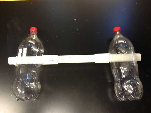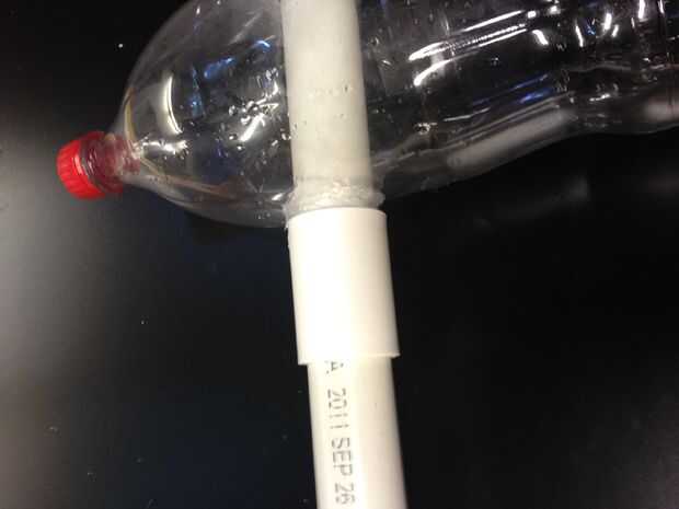 Conecte cada botella a cada lado de los 8" pedazo largo de PVC. El 8" largo pieza servirá como mango.