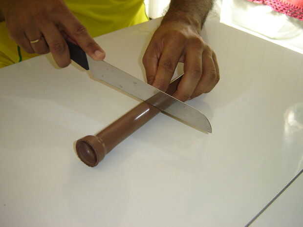 1 - con una sierra, cortar un trozo de piepe con 15 cm.