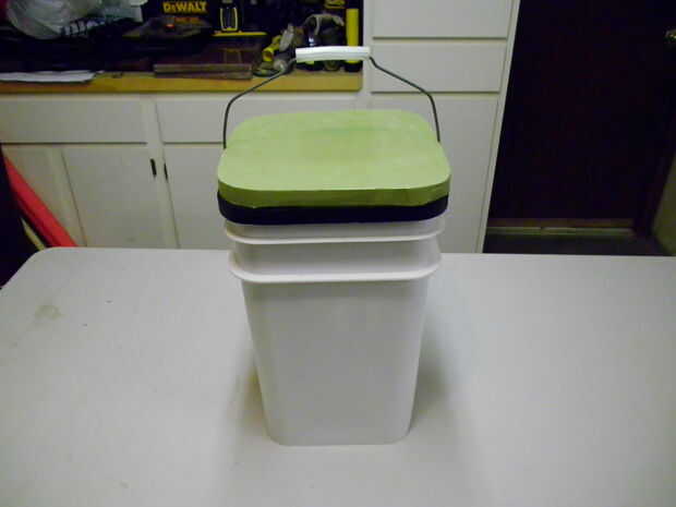 he visto asientos de cubo del deportista en las tiendas durante mucho tiempo y pensaba que eran un concepto fresco, pero eran bastante caros para lo que eran ($20 o más para básicamente un cubo y una esponja). Mis amigos y yo hemos utilizado 5 galones viejos cubos para contener nuestros aparejos de pesca durante años, pero fue sólo eso, un balde lleno de cosas. Si quisiera sentarse en él había que volcar el contenido y Voltéela boca abajo. Si vuelca, su materia se cayó hacia fuera. Si llovía, su materia se mojó. Así que, después de mucha consideración, he decidido hacer mi propio asiento de cubo. Esto es lo que he venido para arriba con un asiento de pesca con el almacenaje de los trastos que hice de 5 galones litros cubo de plástico de kitty. Este particular cubo es cuadrado (porque eso es lo que tenia), aunque podría adaptar estas instrucciones para un cubo redondo bastante fácilmente. Puede ser utilizado como un asiento de ciegos la caza, cubo de herramienta, asiento deportivo o cualquier otro propósito con que usted puede venir para arriba.