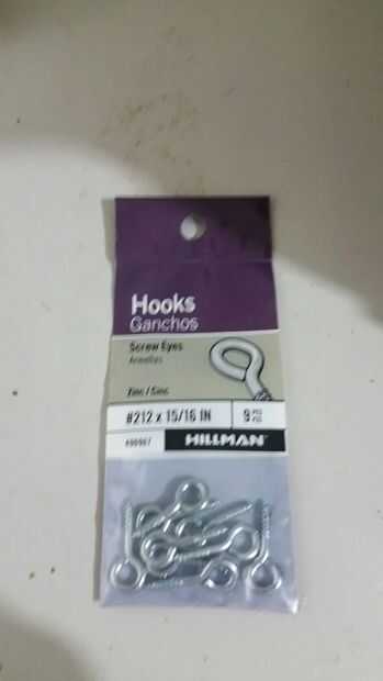 Ganchos de ojo (este paquete era alrededor de un dólar en Lowes)