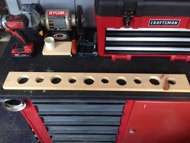 Escalonados los agujeros así que cuando espaciados, así uno agujero grande fue directamente en línea con un pequeño agujero, le permite organizar las barras en orden inverso para todos los carretes no son todo en un lado enredado juntos.