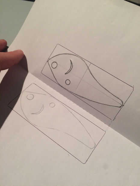 Paso 2 - ahora bosquejo hacia fuera el general atraer diseño y luego con un lápiz oscurecer el contorno del diseño terminado. Para que coincida con el diseño exactamente al otro lado doblar el pedazo de papel directamente en la mitad hacia abajo de la columna vertebral o el punto medio entre los dos rectángulos para que el lado del lápiz está exactamente alineado con la otra caja. Ahora volver a dibujar el señuelo con la presión, transferir el diseño al otro lado. Ahora desplegar el papel y oscurecer hasta la transferencia de lápiz.