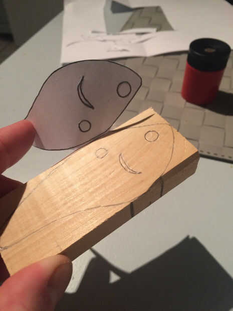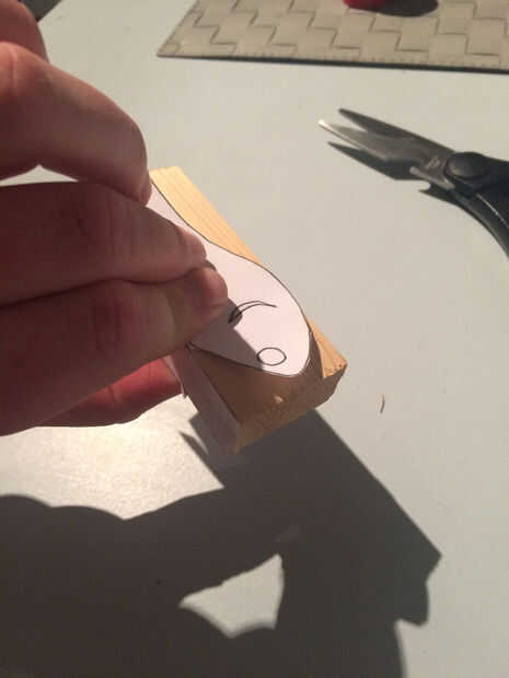 Paso 1 - Coloque un pedazo blanco de papel y rastro 1 lado de la pieza a partir de la madera entonces voltear la madera y trazar el otro lado