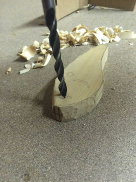 Paso 2 - una vez que tengas la forma áspero básica de señuelos que puede perforar la ubicación del ojo mientras que el señuelo es todavía plano. Lo hice, pero después de arena tenía que volver a perforarlo ya salió un lote de material. Cuando se taladra el ojo agujero uso un más pequeño broca como un 3/16 y perforar todo el camino hasta el otro lado. Así sin importar cuánto de arena los ojos todavía será visible.