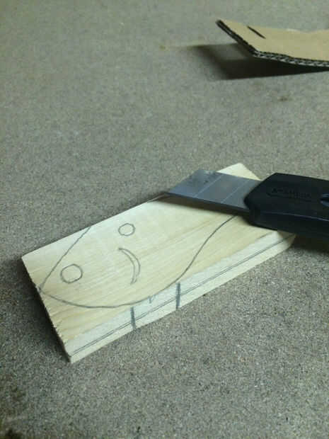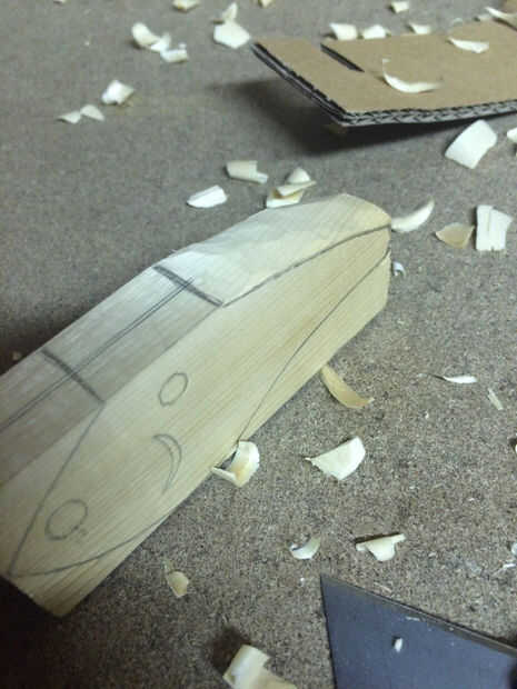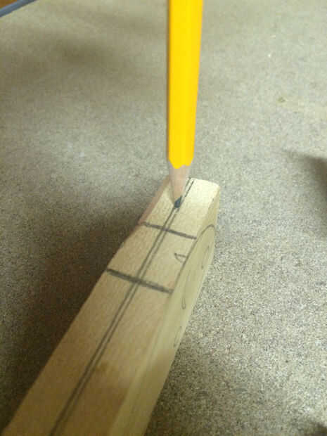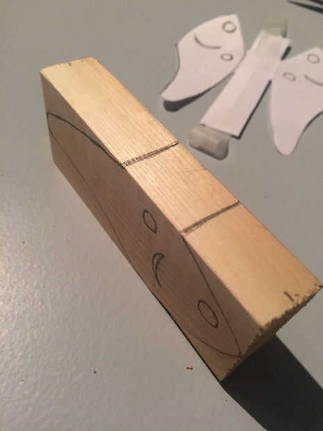Paso 1 - con el bloque de madera marca las áreas donde las dos partes se reunirán el el señuelo final para tener unos puntos de guía para hacer referencia al tallar a. Marqué los lados superior e inferior para saber donde empezar y parar mi talla. No se apresure este proceso más lento es mejor para obtener la forma general. Encuentra el centro de la madera y dibuja una línea para ayudar a mantener el señuelo tan simétrica como sea posible.