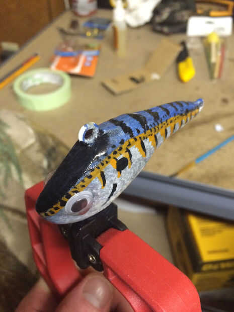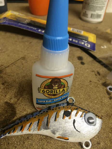 Paso 4 - ahora que el pescado está buscando buena capa el señuelo todo en pegamento y deje secar, esto penetrar en la pintura y la madera y crear un rock duro que acabado contra dientes de pescado muy fuerte además de hacer que todo se queda puesto cuando se lanza.
