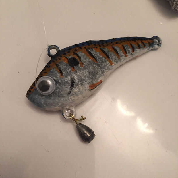 Paso 3 - pruebas, porque yo vivo en Canada y he hecho este señuelo en febrero toda el agua a mi alrededor estaba totalmente congelado así que tuve que usar mi bañera para asegurarse de que la acción es perfecta. Coloque una línea de pesca en el ojal superior.