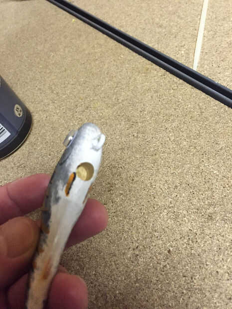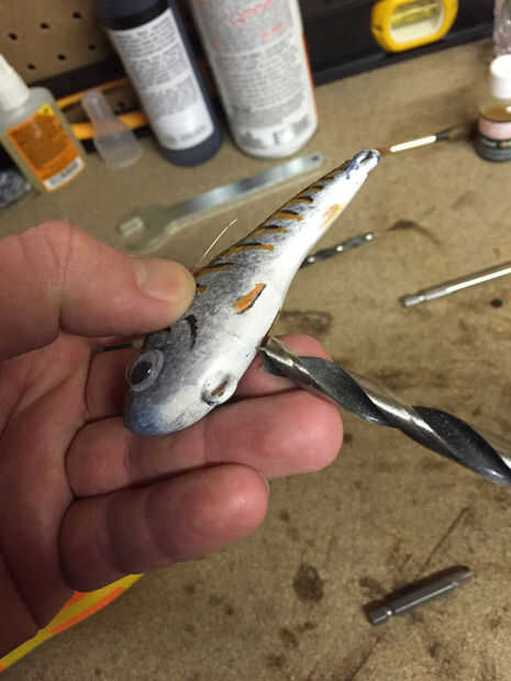 Paso 2 - una vez que han averiguado cuánto peso es necesario utilizar un taladro y hacer un agujero del mismo tamaño exacto que los pesos en la parte más ancha de la parte de abajo del señuelo. Asegúrese de que los pesos de ajuste muy bien y luego usar pegamento fije dentro de la barriga del señuelo. Añadir otra capa de pegamento para sellar todo.