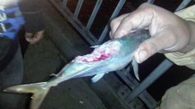 Mi elección del cebo es, dependiendo del tamaño de una sardina entera o caballa a trozos de caballa y las tiras de calamar de Humboldt. Adquisición de cebo fresco, es fundamental para un viaje de pesca exitosa. Prefiero coger cebo la noche antes de ir en un viaje de pesca, metiéndola en una bolsa de papel o envueltos en periódico y echar en unas bolsas de plástico y en la nevera. No congelarlo. Auto drenaje hielo funcionará también.