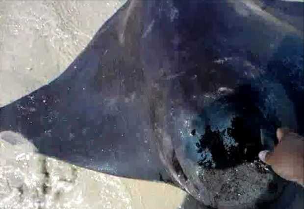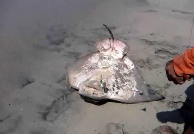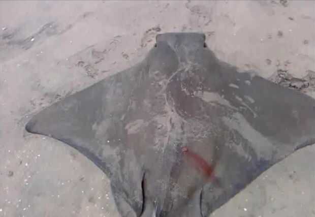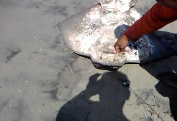 Esta raya murciélago fue desembarcada a mano.