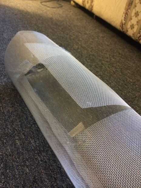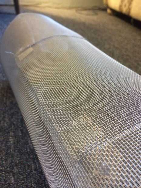Después de cortar la puerta que caliente pegada unos pedazos de pantalla (Foto 2) para mantener la puerta cerraron mientras está en uso.