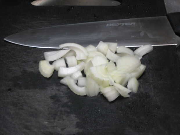 . Las cebollas que se muestra en la imagen deben cortarse en cubos de más.