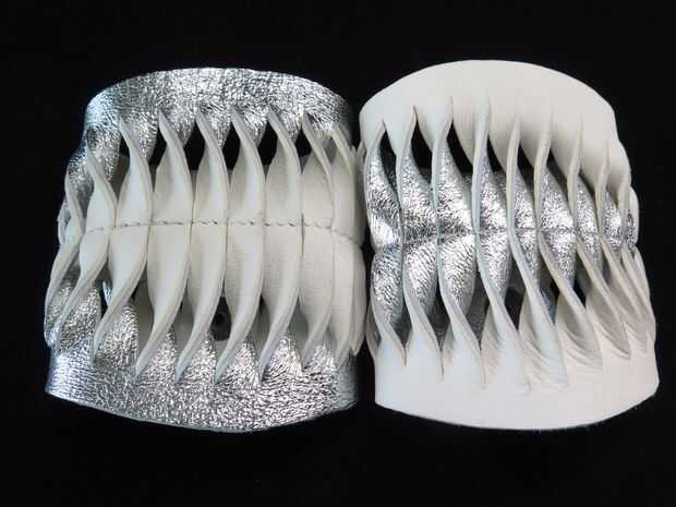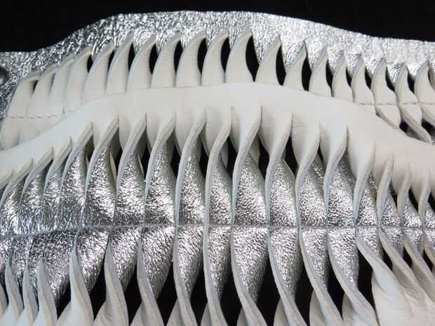 He estado viendo este tipo de detalle utiliza mucho últimamente en ropa de cuero y ropa de fiesta, y quería ver si podía replicarlo. Resulta que, es una técnica fácil y creo que los resultados son tan hermosos, con una mirada orgánica, un poco de Biomecánica, como branquias, escamas o parte de una estructura esquelética... en otras palabras, justo encima de mi callejón.