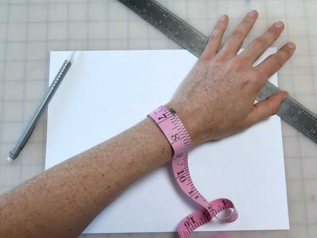 Para crear un patrón de mis puños, primero medí el diámetro de la muñeca con una cinta métrica. Luego transferir esta medida al papel y utilizarla para crear mi patrón. Dibujé una forma que pensé que sería agradable como un un puño, más grande en el centro y y más pequeños hacia los extremos.