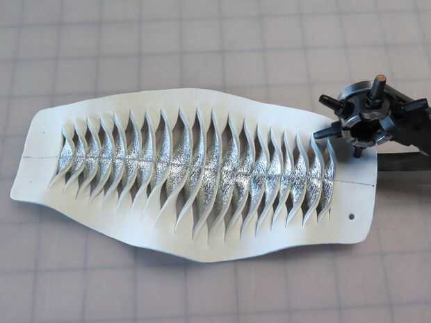 Ahora recortan el cuero sobrante de alrededor de mi brazalete con unas tijeras afiladas.