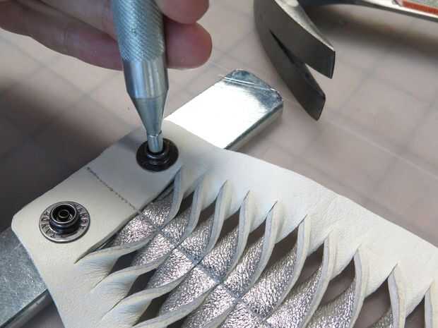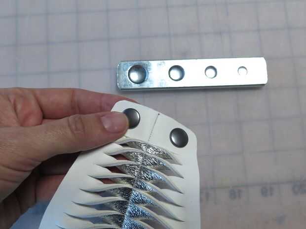 Luego perfora agujeros en ambos extremos y había añadido broches utilizando mi setter de snap y martillo.