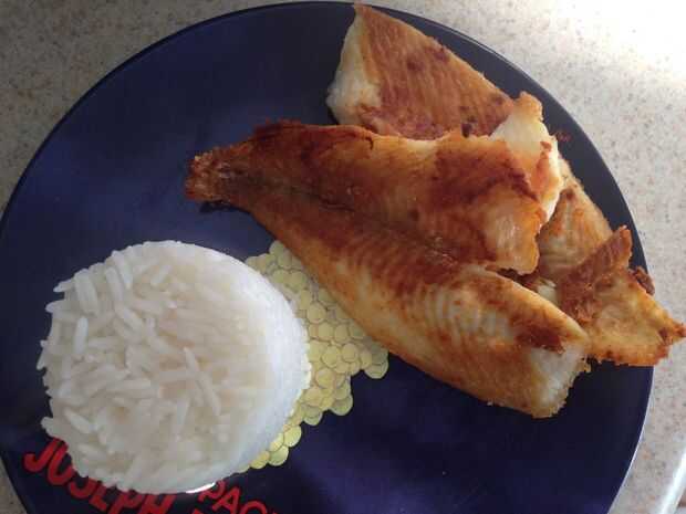 Pescado frito y arroz al vapor (11 / 12 paso)