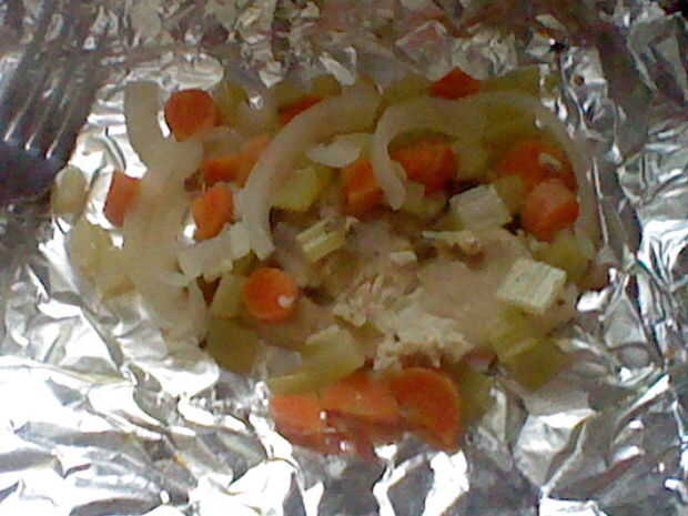 Pica tus verduras y también les coloque encima el pescado