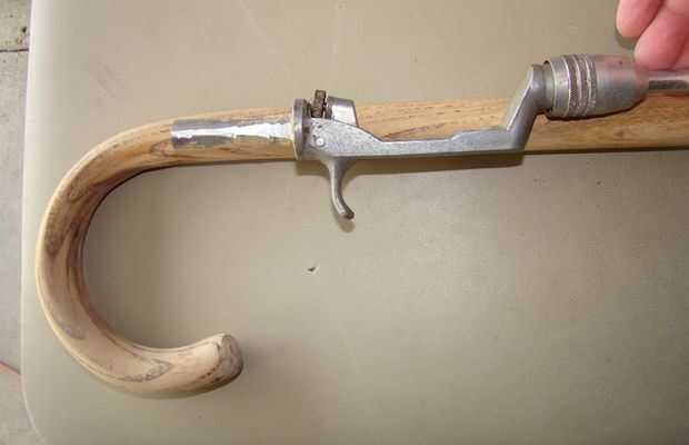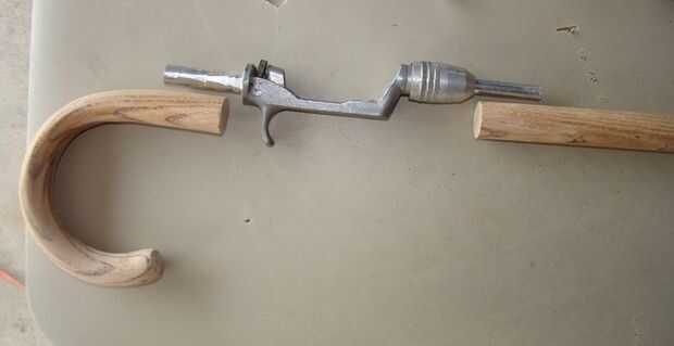 El mango se utilizó para determinar donde se reduciría la caña de madera. Necesitaba dejar suficiente espacio para el vástago de la palanca debajo de la empuñadura curvada de la caña.