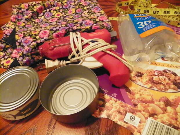 esta es la caja de joyería de tamaño de viaje perfecto. También funciona bien para los titulares de cola de caballo. Los suministros que necesita para la cajita son: 1 lata de atún, (5 oz), caliente la caja de cereal, palillos del pegamento pistola y pegamento, aguja e hilo, tijeras, retazos de tela (corté hasta un bonito chaleco que encontré en la tienda de economía) medición de cinta y lápiz, retazos de mezclilla y cinta. Para las cuentas del papel necesita una revista vieja con cuadros coloridos, mod podge o cola de decopauge, un palillo de dientes y q-Tip.