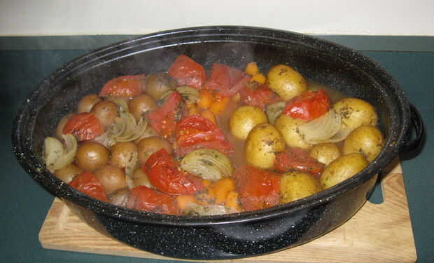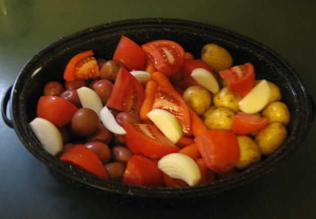 Mientras espero el Lucio marinar hacer mis platos, hoy tengo zanahorias y papas. Colocar la zanahorias patatas Rousses y Dorees patatas, en una cacerola de la asación. Espolvorear picada tomates y cebollas en la parte superior con pimienta negra, sal de apio, machacan ajo o ajo en polvo y fresco picado perejil o perejil escamas. Añadir 1 litro de agua o caldo de pollo a la cacerola de la asación, cubra y hornee a 350 grados durante dos horas.