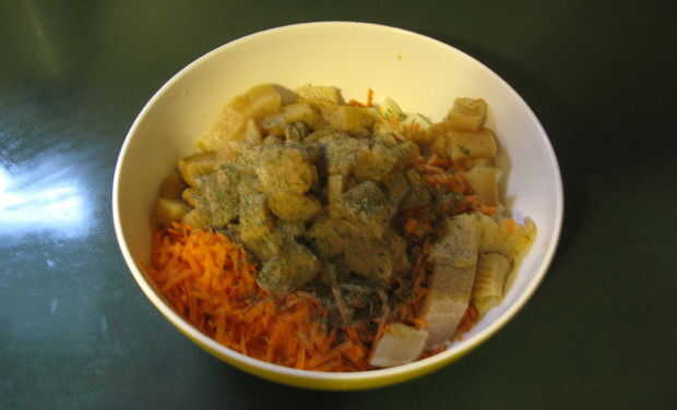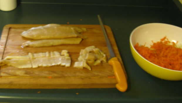 3. Trocear los filetes de Lucio que han sido marinar por 20 minutos y el lugar en un tazón.