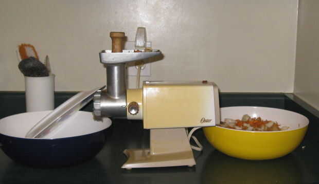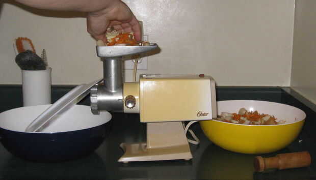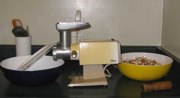 Mezclar los ingredientes de todas las carnes con especias antes de molerlo para asegurar una mezcla a través de las especias en la carne cuando es molido en el molino. También cubrir el extremo de la máquina para picar carne con una placa para evitar que la amoladora escupir ingredientes en mi cocina.