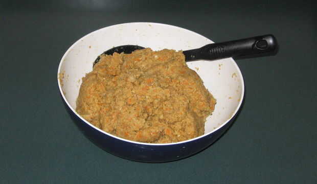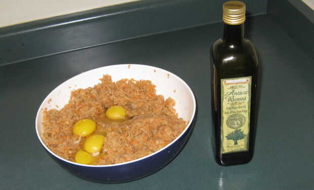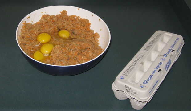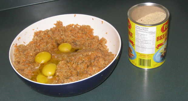 9. Añadir 1,1 libras o 1 / 2kg de pan rallado o harina de matzo.