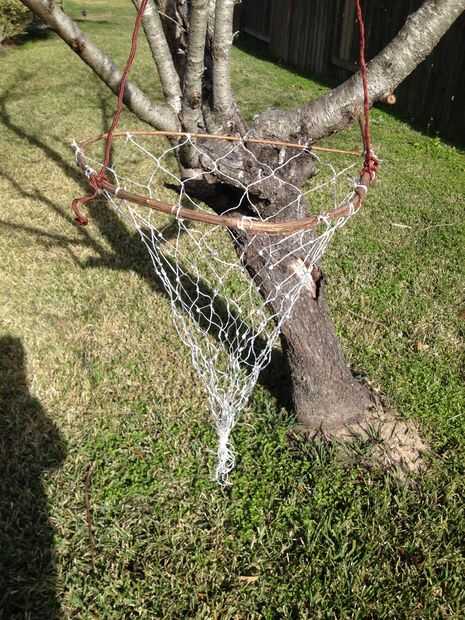 Cómo hacer un pez pequeño neto de un bolso neto congelador Pop.Esto puede usarse también para la captura de cigalas (cangrejos) o las ranas.Materiales:1 bolsa de red Pop plástico del congelador, o un bolso neto producto funcionaría así.2 perchas de a