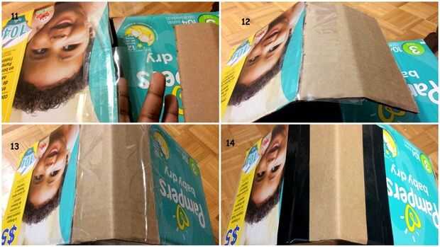 3) Cuando levantamos la tapa cartón al triángulo forma, los lados no resolver así uso otro pedazo de cartón y fije para que una tapa triangular perfecta es formada.