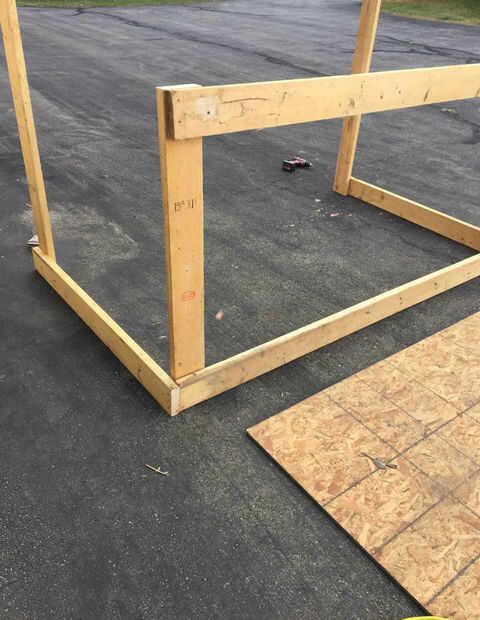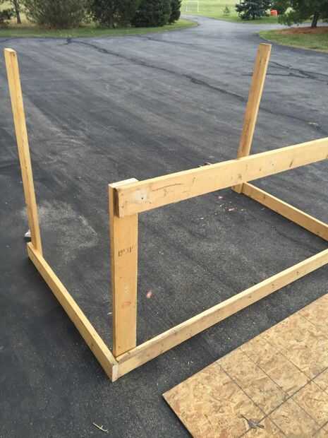 Atornille uno de los 8 pies de página en dos de los tableros de 4 pies perpendicular. Atornille el otro pie 8 en la parte superior de los tableros de 4 pies. Después de eso tornillo de los dos otros tableros de 4 pies en la parte inferior de la "Plaza" acaba de hacer. Uno de los tableros de 5-6 perpendicular a tornillo en uno de los tableros de 4 pies, lo mismo en el otro lado. después de todo de atornillar el tablero de 6 pies para la parte superior de la Junta de 5-6 pies y la parte superior de la placa de 4 pies así que hay un sesgo.