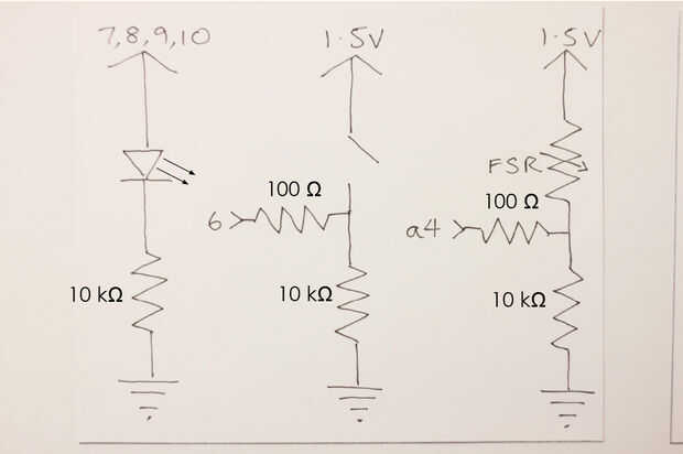Cuadro 2 muestra los diagramas de circuito para cada comoponent. Pines de Arduino específicos se mencionan para garantizar la compatibilidad con el código.