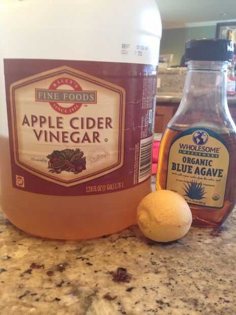 Combinar 1 cucharada de vinagre con 1 cucharadita de jugo de limón. Luego agregar 1 T de agua y 1 t de agave. Mezclar y beber dos veces al día, mañana y noche. Si demasiado fuerte, añadir más agua hasta que prefiera disfrutar ;)