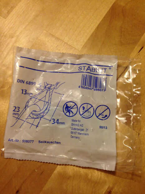 Dedales varían según la anchura de la cuerda. Como se puede ver en el paquete, la usé era adecuado para una línea de 5 milímetros, pero caben perfectamente en esta cuerda de 6 milímetros así.