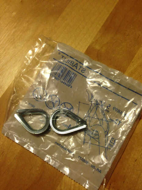 Como se puede ver en el producto final, usé un dedal de acero galvanizado para el empalme del ojo. Dedales pueden dar mejor resistencia al desgaste y a mantener su forma cuando ojo suave generalmente no. Dedales son un tamaño del conjunto, por lo que no hay espacio para ajustar la apertura. Naturalmente, la utilicé para lograr un aspecto náutico. la cuerda no sujeto a desgaste duro en absoluto.