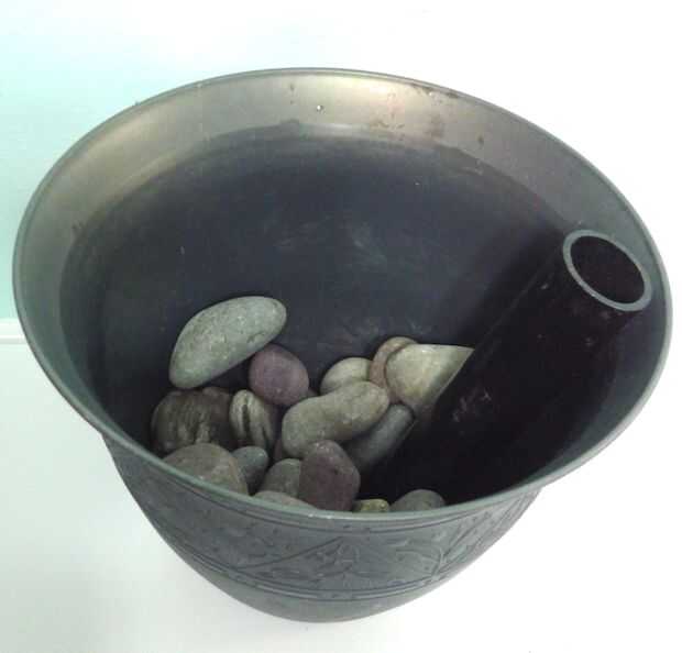 Utilizar cualquier sobrante tiene, no necesita ser rígido. Todo realmente está buscando es una manera de verter agua desde la parte superior y que vaya a la parte inferior de la maceta.